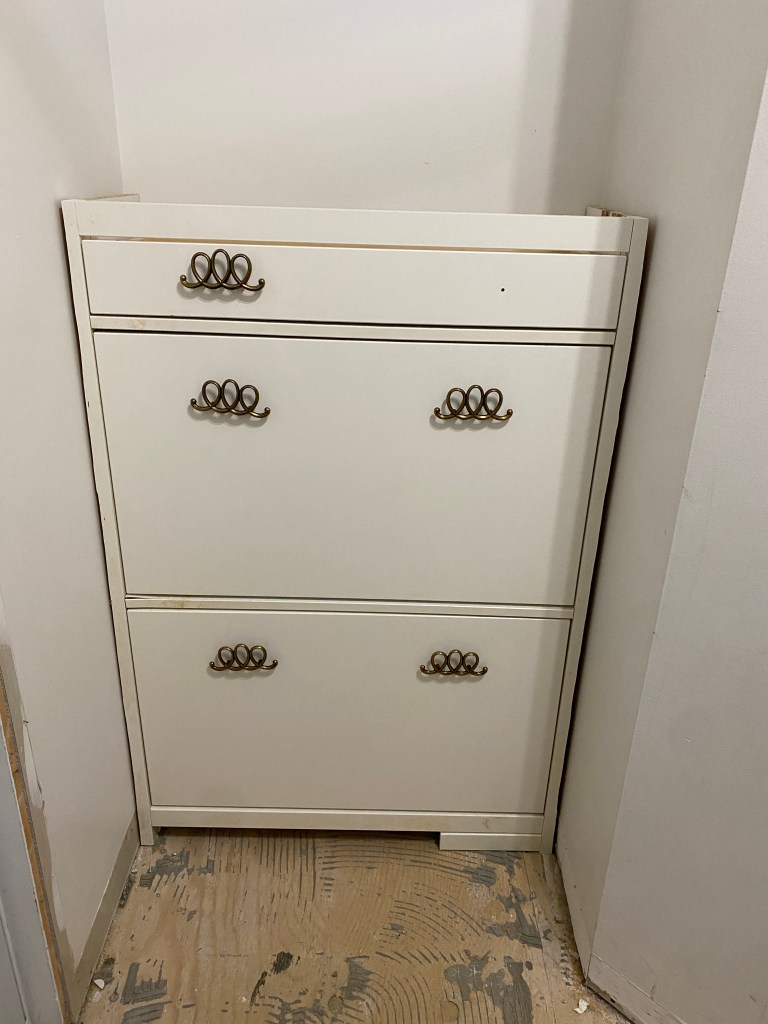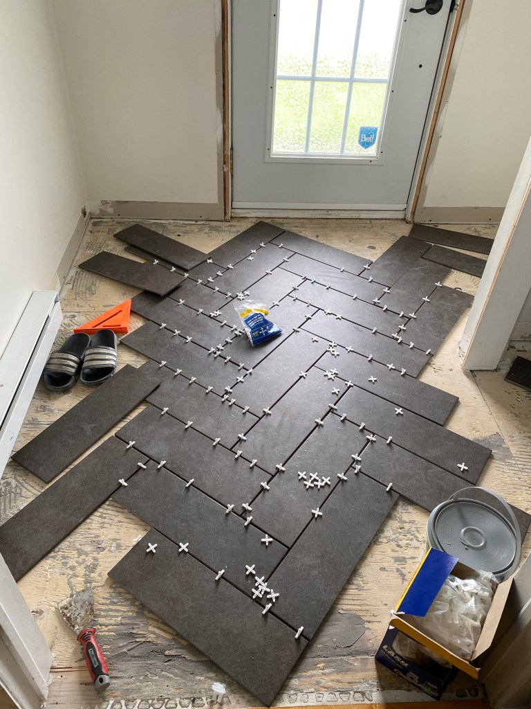 The prep for the tile was completed and fitting the shoe storage solution was also accomplished.